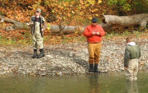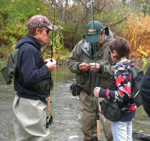 On another beat of the stream, Mike, another mentor, worked with a couple new students as the looked at steelhead moving upstream.