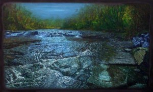 In 2000, after finishing a series of paintings on Cuban and American culture, I was ready to move into a new direction and I began the Biological Regionalism Series. The series incorporated the research I had been acquiring over the previous years and motivated me to investigate and research many other streams in western New York and the Catskills as well as bodies of water in Massachusetts, Florida, Alaska, Montana, New Mexico, Montana, Idaho, Oregon, Arizona, California, Virginia, Pennsylvania and also Wales, England, Iceland and Cuba. As my travel and exhibitions opportunities drew me further and further away from my local waters, I found little time to document the specific regional locations where I had logged hundreds of hours studying the stream’s hydraulics, observing the different holding patterns of fish through the year, guiding clients and trying my own fly patterns on migrating fish.