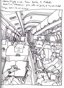 Sketchbook J 15 – Airplane – Boston to Madrid