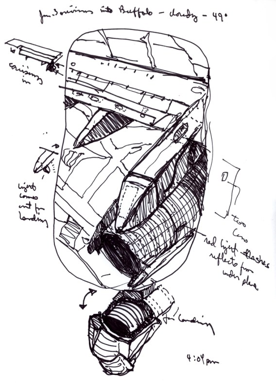 Sketchbook K 36 – Airplane Wing – Coming into Buffalo, NY