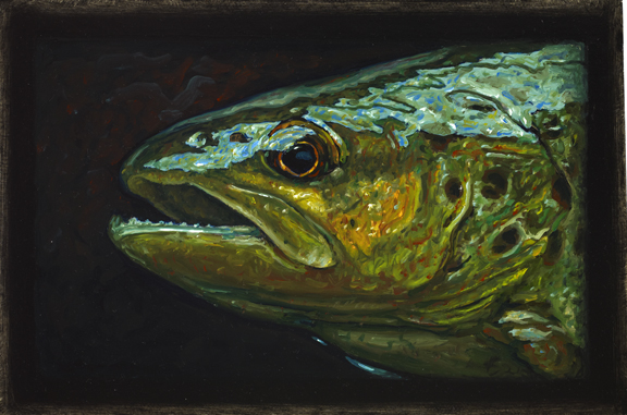 Alberto Rey catskill E 72 dpi Biological Regionalism: Brown Trout, Willowemoc River, Catskills, New York V Oils on Plaster 6″ x 9″