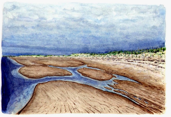 Cranes Beach, Low Tide Cranes Beach, Low Tide, Massachusetts, United States 6″ x 9 ” watercolor $1200