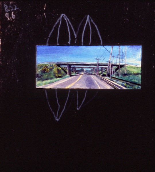 Route 90 Overpass Madonnas of Western New York: Route 90 Overpass, Dunkirk, New York 6″ x 6″ x 3.5″ Oils on Wood