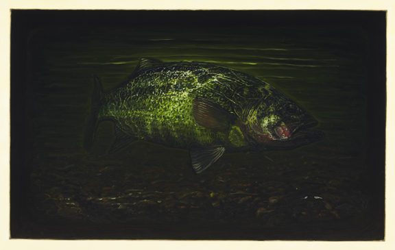 Largemouth Bass Biological Regionalism: Largemouth Bass, Ellicott Creek, Amherst, NY 60” x 96” Oils on Plaster $8000