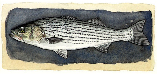 Striper Biological Regionalism: Striper, Cranes Beach, Massachusetts, United States 6″ x 9″ watercolor $1200