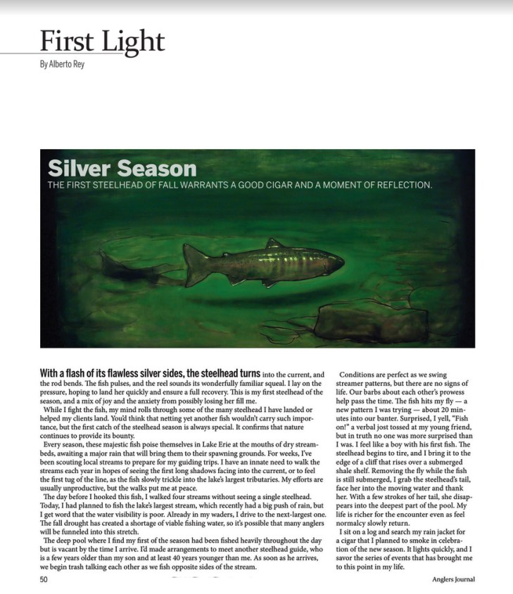 Published Illustrated Books and Articles Cattaraugus Creek – Art of Angling 2004 Guggenheim Bilbao in Spain – Buffalo Spree 2008 Flyfishing Western New York – Buffalo Spree 2008 Traveling in Iceland – Buffalo Spree 2008 Mustard Seed Restaurant – Buffalo Spree 2009 Aesthetics of Death Series – The Drake 2013 Fly Fishing in Iceland – Buffalo Spree 2015 Winter Fly Fishing – Buffalo Spree 2015 Kathmandu, Nepal – Buffalo Spree 2016 Complexities of Water Book 2016 Lodging at Raniban Retreat, Pokhara, Nepal – Buffalo Spree 2017 Spirituality of Nature – Buffalo Spree 2017 Jokla River in Iceland – Anglers Journal 2017 Extinct Birds Project Book 2018 Trout Fishing – Edible Western NY 2018 Fly Fishing in New Zealand – Anglers Journal 2018 River of Dreams – Anglers Journal 2020 Silver Season – Anglers Journal 2021 Alberto Rey – Hallowed Waters Journal – Issue 1 – Fall 2020 Bad Vibes at the Little Bighorn – Fly Fishing International Magazine – Volume 2, Issue 1, 2022 Two Homelands – FlyFishing International Magazine – Volume 4, Issue 4, 2022 Native American Fish and Wildlife Society – Summer Youth Practicum – 2022 Ukraine War Art – Buffalo Spree – September 2022 Investigating Global Issues Related to the Body – Buffalo Spree – December 2022 K ART – Indigenous Art Gallery – Buffalo Spree – January 2023 Center for Exploratory and Perceptual Arts and Roger Tory Peterson Institute – Buffalo Spree – March 2023 Buffalo Arts Studio and 321 Residency – Buffalo Spree – April 2023 Buffalo Institute of Contemporary Art and Art Dialogue, May 2023, Buffalo Spree Buffalo AKG Art Museum – Buffalo Spree – June 2023 Revolution Art Gallery and Merry Shelley – Buffalo Spree – November 2022Crucible Art Collective and Tattoo as Fine Art – Buffalo Spree – July 2023Art in the Wilderness – Fly Fishing International Magazine – Volume 3- Issue 1 -2023 Marion Art Gallery and Assembly House – Buffalo Spree – September 2023 Crane Library and NACA – Buffalo Spree – October 2023Meibohm Gallery and Karpeles Manuscript Museum – Buffalo Spree – November 2023Mirabo Press and Rivalry Projects – December 2023 CEPA and Marion Art Gallery – Buffalo Spree – December 2023 Around the World (Galapagos) – Orvis News – February 26, 2024 Around the World (Magic Waters, Chile) – Orvis News, March 18, 2024 Around the World (Patagonia Baker, Chile) – Orvis News, March 27, 2024 Around the World (New Zealand) – Orvis News – May 14, 2024 Around the World (Australia/Tasmania) –Orvis News – February 31, 2024 Around the World (Japan) – Orvis News, June 17, 2024 Around the World (Patagonia Baker, Chile) – Orvis News, July 3, 2024 Staying Connected at Wyoming’s Brush Creek Ranch, Orvis News, September 4, 2024 Slovenia: An Unpressured Fly-fishing Destination, Virginia Sportsman, Summer 2025