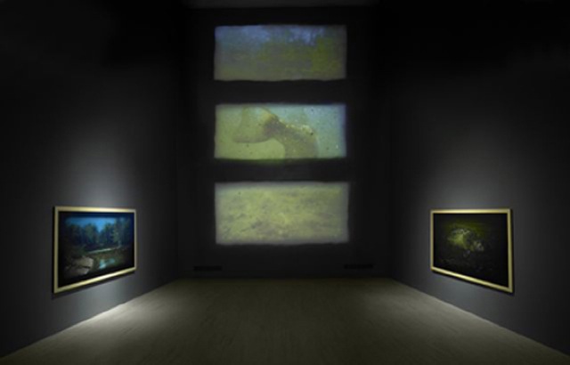 Biological Regionalism Installation Lightwell Gallery, University of Buffalo Art Gallleries, Buffalo NY Biological Regionalism: Ellicott Creek, Amherst, New York, USA Installation view from the first floor of two paintings and three video projections