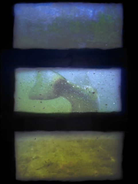 Top panel: looking up through the water- 1:30:34 / Middle panel: looking straight ahead at the moving bass – 1:36:30 / Bottom panel: looking down at the creek bed – 1:30:12