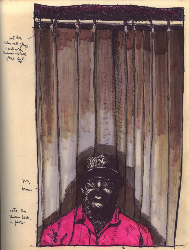 Sketchbook C 3 – Self-portrait in front o f curtain Self-portrait in front o f curtain (Study for painting) Markers on paper 1984
