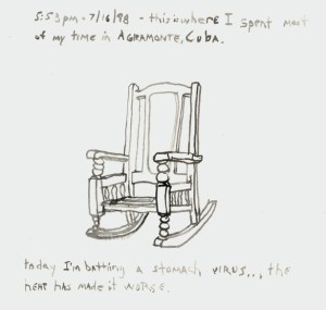 Sketchbook Q 13 – Rocking chair, Agramonte, Cuba Rocking chair from Victoria, Fredy Guerra, and Amparo Gonzalez de Guerra’s Back Patio Agramonte, Cuba 1998