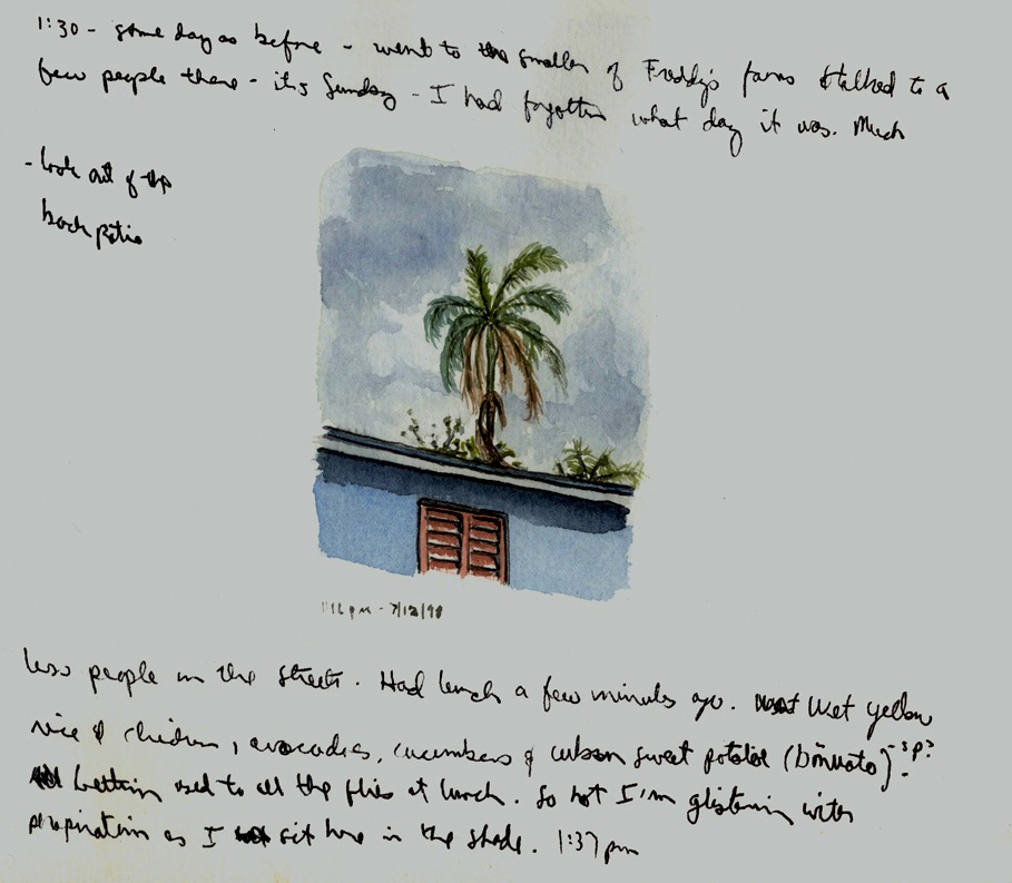 Sketchbook Q 5 – Agramonte, Cuba View from Victoria, Fredy Guerra, and Amparo Gonzalez de Guerra’s Back Patio Agramonte, Cuba 1998