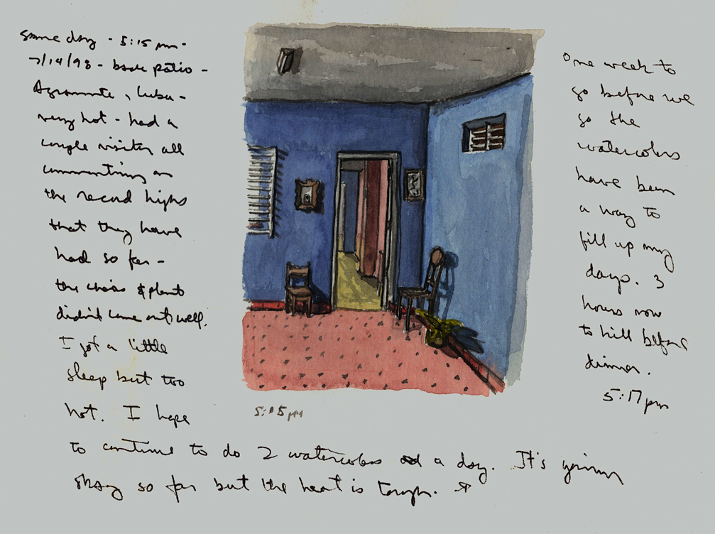 Sketchbook Q 9 – Agramonte, Cuba Victoria, Fredy Guerra, and Amparo Gonzalez de Guerra’s Back Patio Agramonte, Cuba 1998